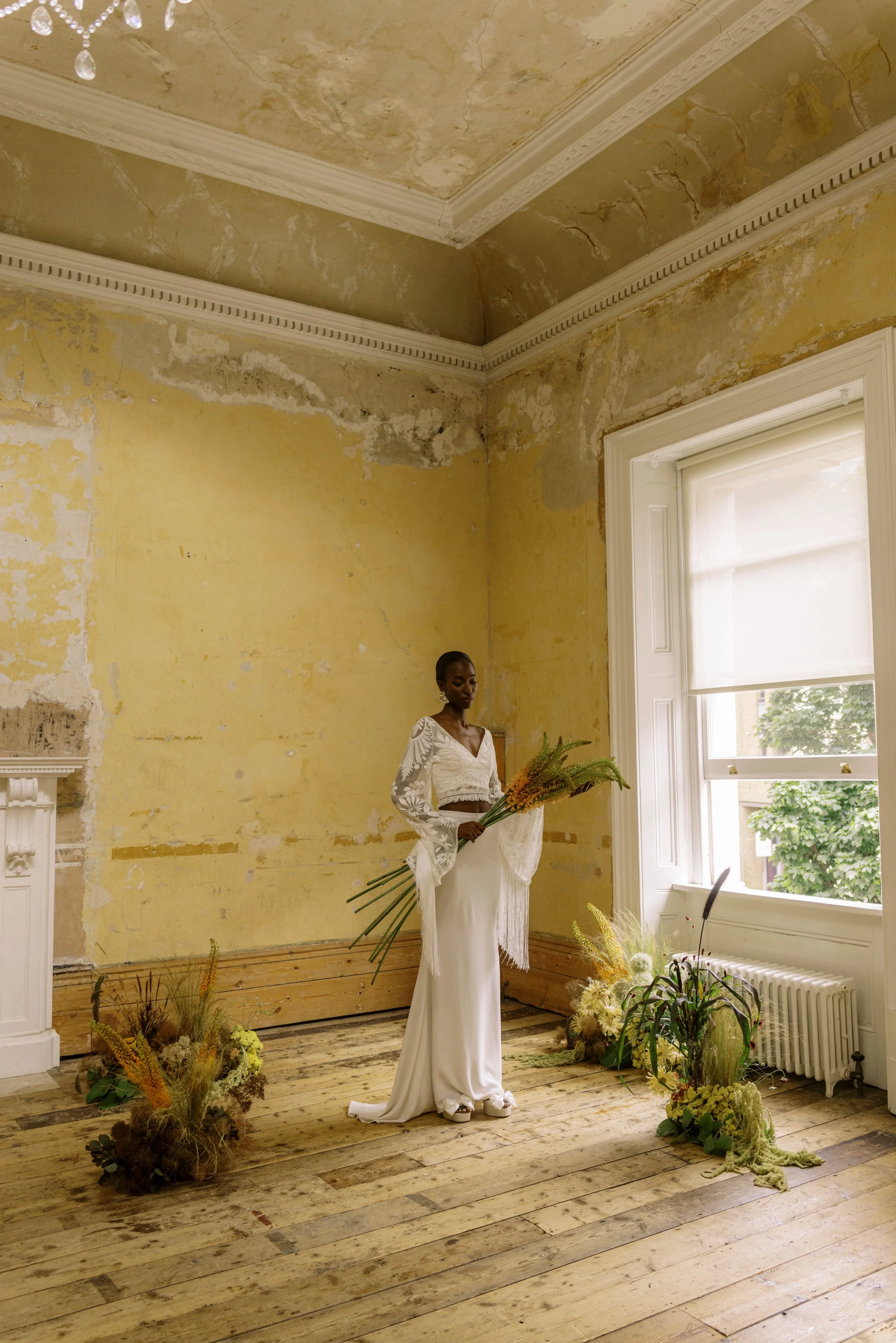 We created immersive floral installations that reflected the wild, free-spirited essence of the bridal collection designs. Captured beautifully by @emmylou.kelly, the florals brought softness, movement and emotion to the architectural space @oldsessionshouse, framing each moment with untamed blooms and botanical details that elevates every event and space into an experience.